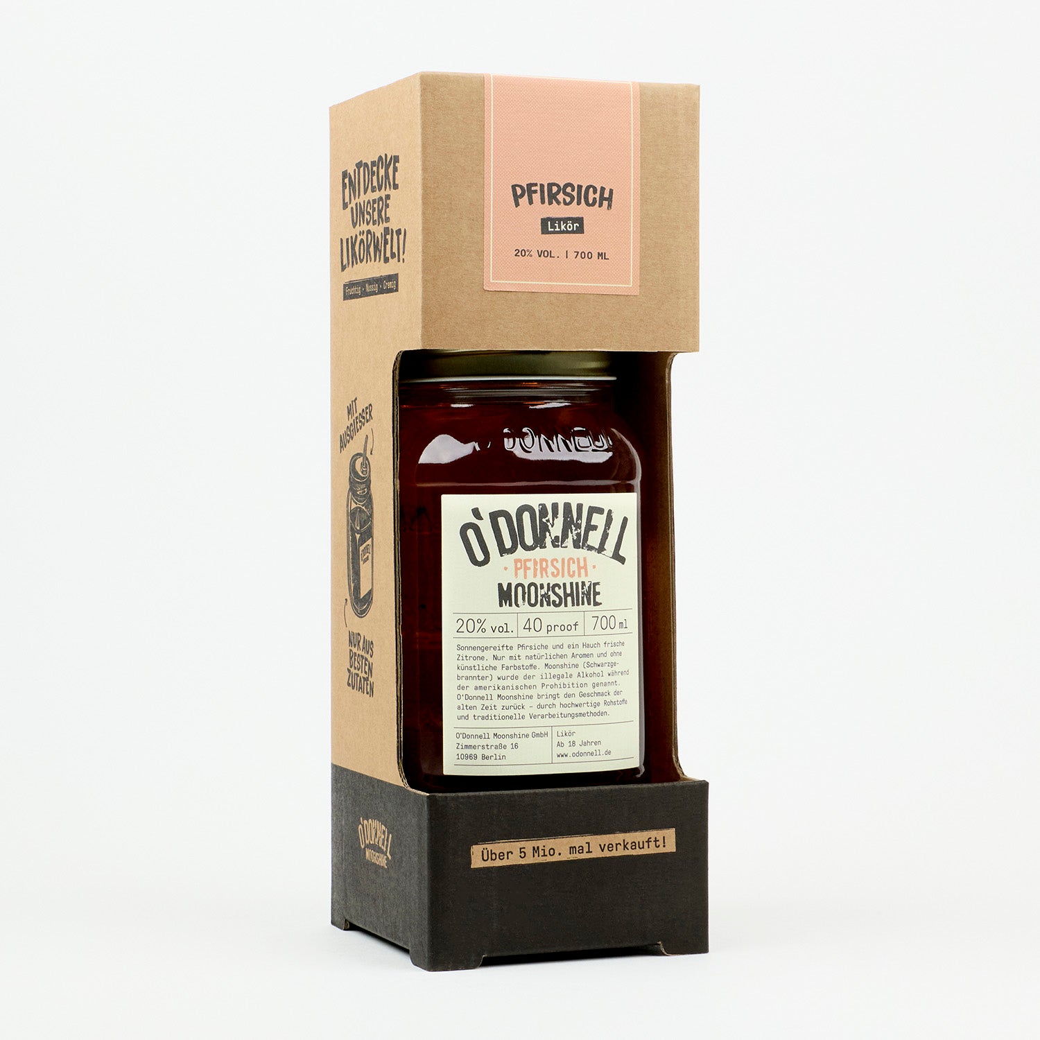 Der erfrischende Likör riecht nach sonnengereiften Pfirsichen und wird ausschließlich aus natürlichen Zutaten hergestellt, ohne künstliche Farb- oder Konservierungsstoffen. Echter Pfirsichfruchtsaft und leichte Citrusnoten machen den neuesten Zuwachs im O’Donnell Sortiment zu einem besonders sommerlichen Geschmackserlebnis.