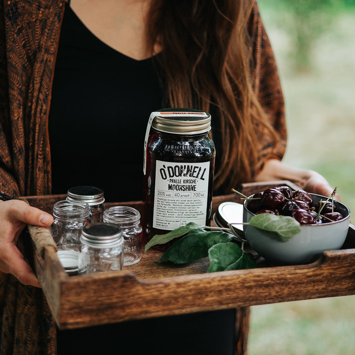 Mit Kirschen macht man nie etwas verkehrt - das gilt auch für unsere “Pralle Kirsche”. Der fruchtige Kirschlikör mit leichter Vanillenote passt einfach immer und ist nicht umsonst einer der Klassiker unter den Likören. Nach den alten Regeln der Handwerks- und Brennkunst wird O'Donnells Kirschschnaps in Deutschland hergestellt und in traditionsechten Mason Jars abgefüllt. Er schmeckt nach frisch gepflückten Kirschen aus dem Garten und hat einen unverwechselbaren Geschmack - egal ob du den Kirschlikör pur genießen oder dir schmackhafte Cocktails damit mixen willst.